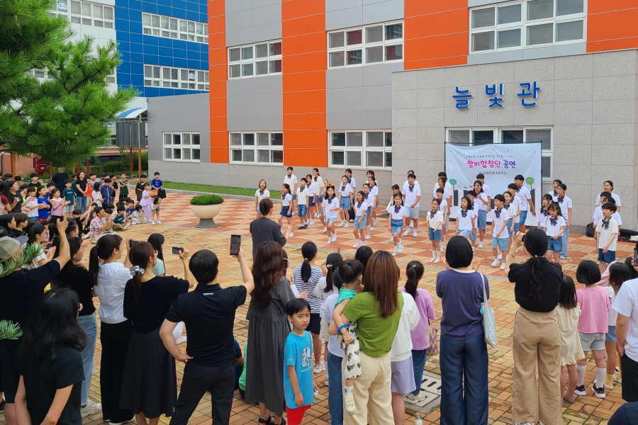 □ 합창단 학생들은 ‘함께라서 행복해’를 시작으로 ‘노래는 마법 버스’, ‘행복 넝쿨’ 등 세 곡을 열창했다. 등교하던 학생들과 자녀를 데려다주던 학부모, 출근하던 교직원들은 발걸음을 멈추고 공연을 관람하며 학생들의 노래와 피아노 선율에 박수와 환호로 화답했다.