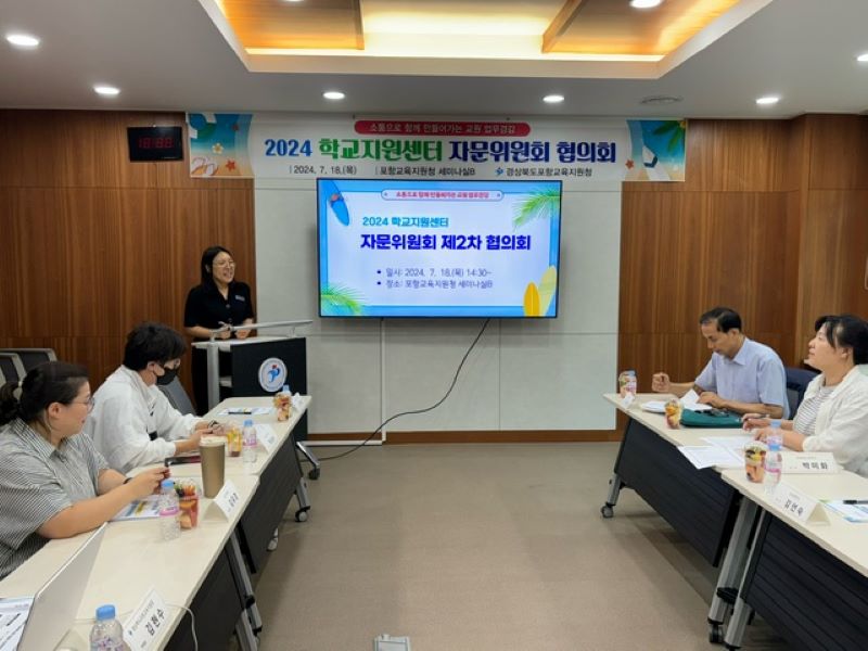 포항교육지원청(교육장 천종복)은 2024년 7월 18일(목) 포항 학교지원센터 자문위원 11명을 대상으로 『2024 학교지원센터 자문위원회 제2차 협의회』를 개최하였다.
