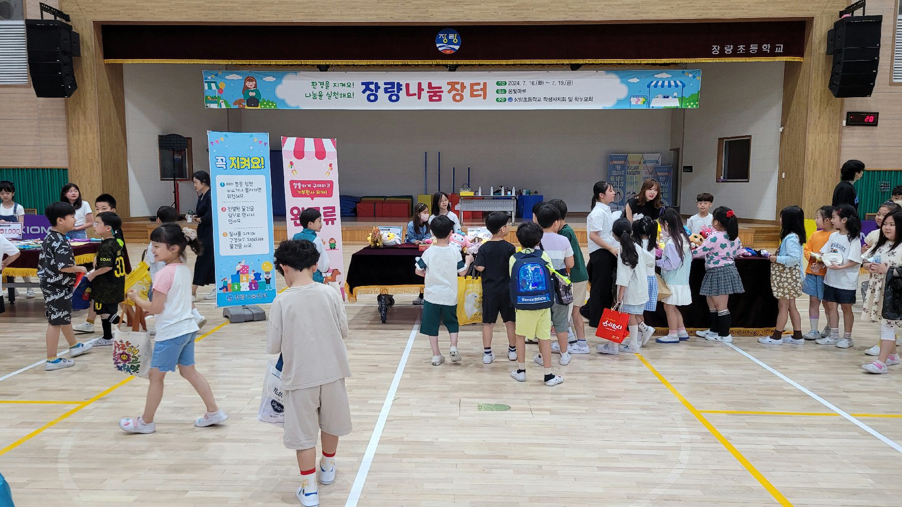장량초등학교(교장 김창덕)는 7월 16일(화)~18일(목)에 꿈빛마루(교내 다목적 강당)에서 학생자치회 및 학부모회 주관으로 전교생이 함께하는 ‘장량나눔장터’를 운영하였다.