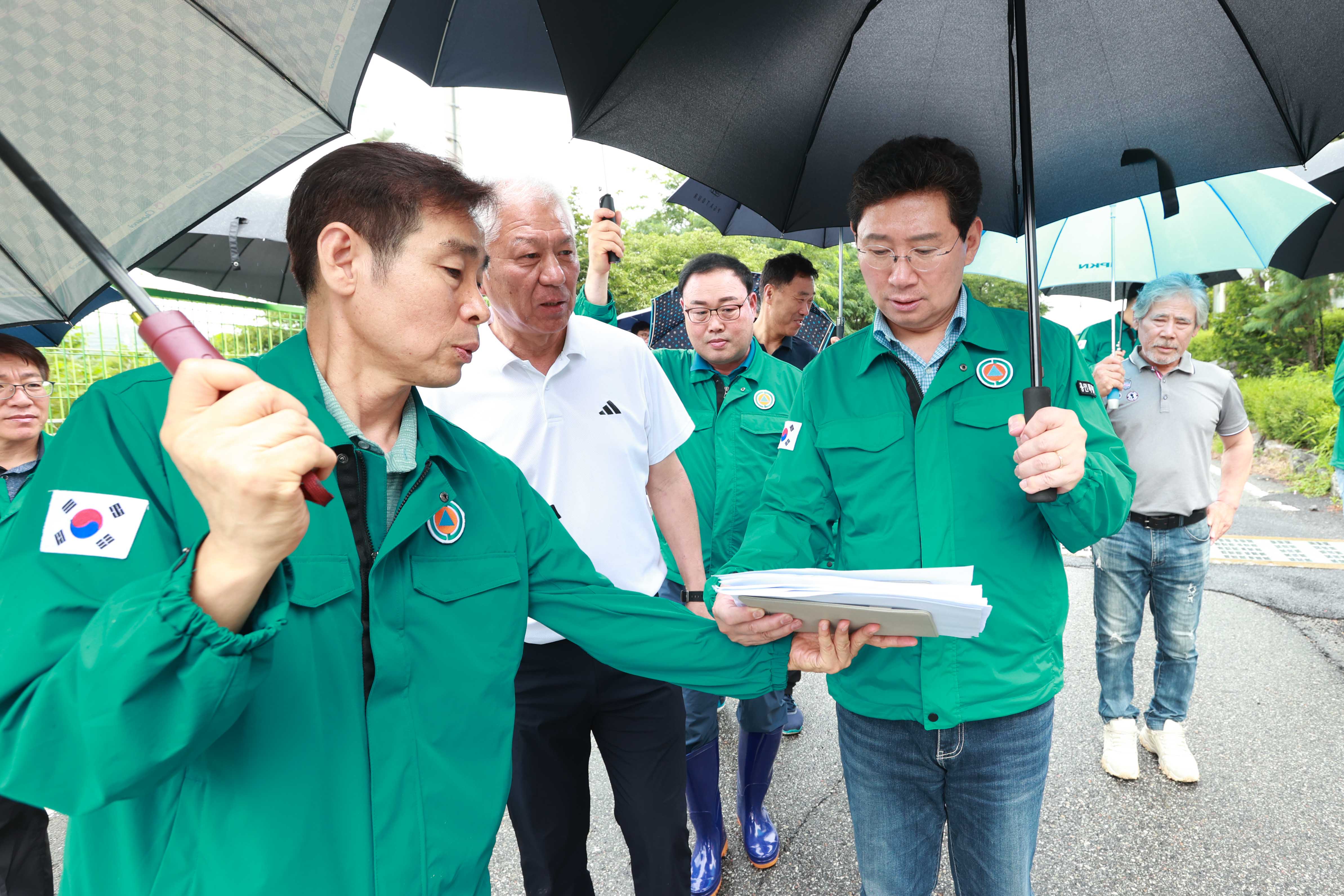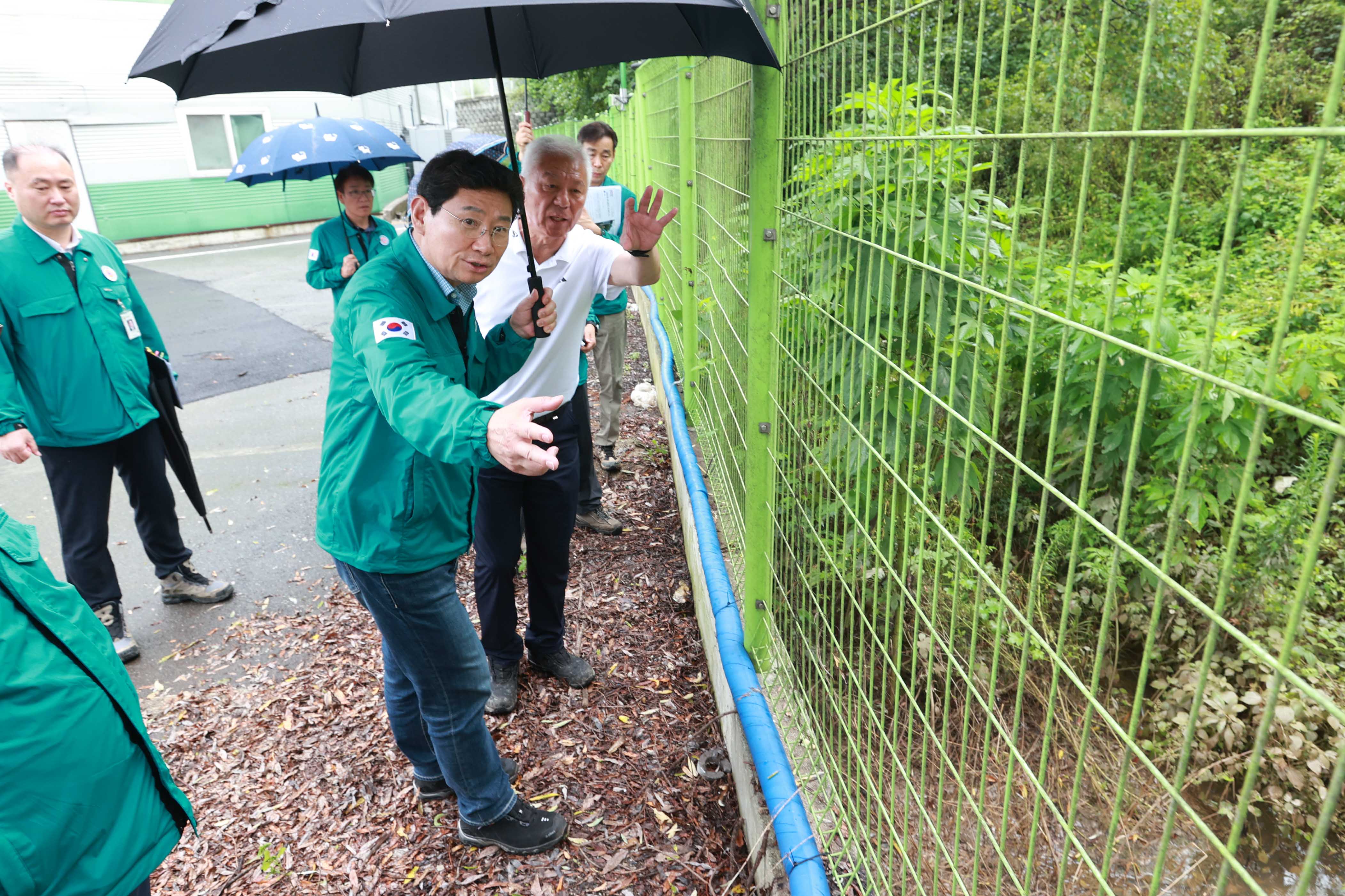 물류창고를 둘러본 이 시장은 하천 주변 진행 중인 수목제거 사업에 만전을 기하고, 비 피해를 예방하기 위해 주변 맨홀과 배수로 정비를 주문했다.