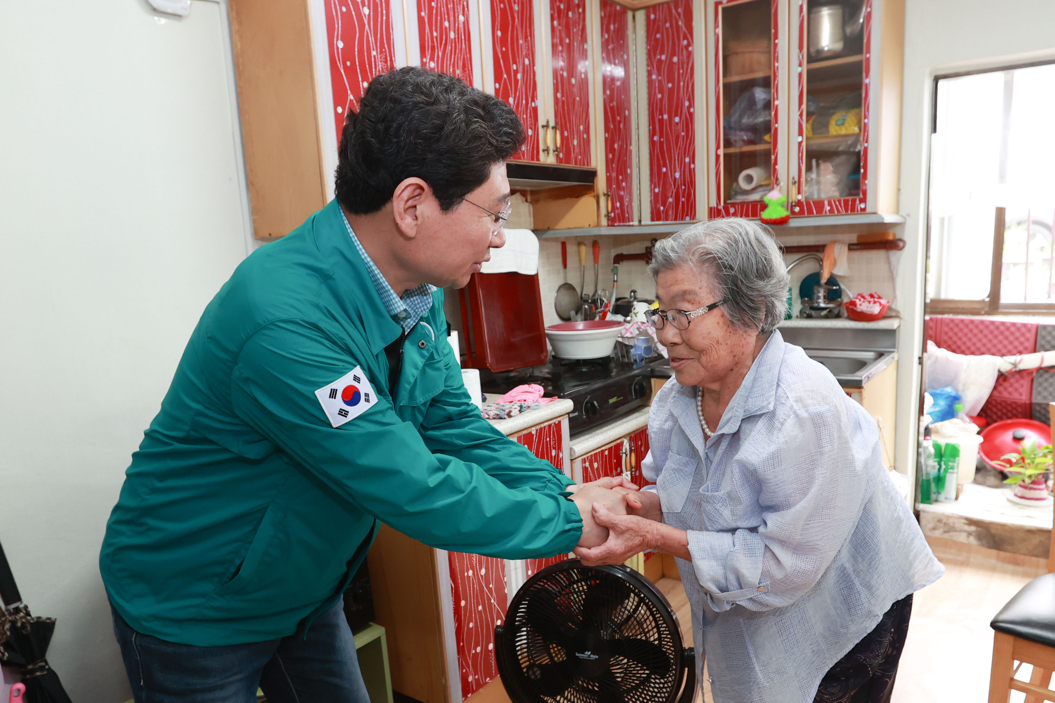이 시장은 A씨의 집을 찾아 복구 상황을 살피면서 A씨를 위로했다. 이어 A씨가 임시로 생활고 있는 경로당도 방문해 A씨를 보살펴 주는 이들에게 감사의 뜻을 전했다.