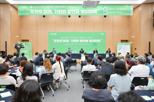 [금요저널] 포천시는 지난 19일 포천시청 신관 2층 대회의실에서 옛 6군단 부지 반환 및 기회발전특구 토크쇼, ‘포천의 미래, 기회와 발전을 맞이해’를 개최했다.