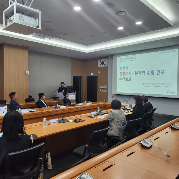 이날 중간보고회에는 김종훈 포천시 부시장을 비롯한 16명의 건강도시위원회 위원이 참석했으며 용역 수행기관인 경복대학교 산학협력단의 중간보고가 진행됐다.