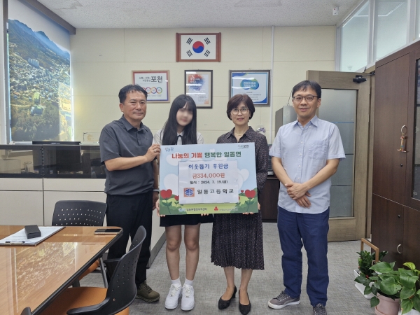 김경인 일동면장은 “지역사회의 돌봄이 필요한 취약계층 이웃을 위해 나눔을 실천해 주신 일동고등학교에 감사하다 기탁해 주신 성금은 도움이 필요한 이웃들을 위해 소중히 사용하겠다”고 말했다.