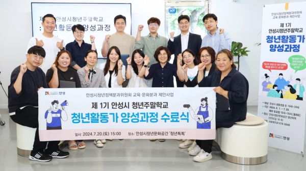 [금요저널] 안성시는 지난 7월 20일 안성시청년문화공간 ‘청년톡톡’에서 제1기 안성시청년주말학교 ‘안성시 청년활동가 양성과정 ’수료식을 개최했다.