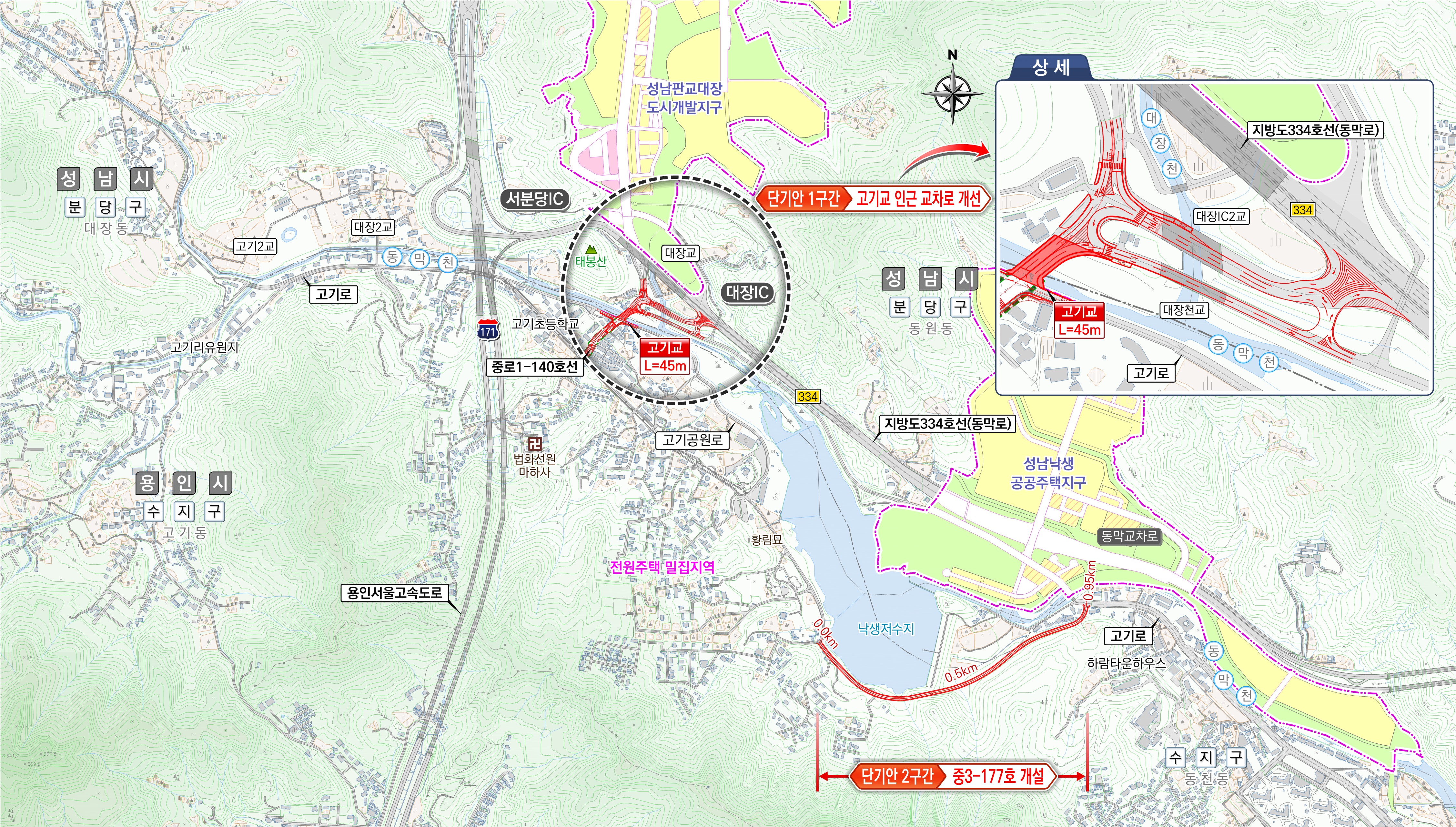 용인시는 단기 1구간 고기교와 중로 1-140호선, 단기 2구간의 고기교 우회도로인 중로 3-177호선의 신설을 동시에 추진하기로 했다. 이에 따라 고기교는 준공 후 40여 년 만에 확장․재가설 절차를 밟게 됐다.
