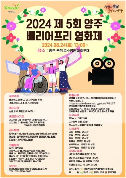 [금요저널] 양주시는 오는 8월 3일까지 2024 배리어프리영화제 ‘단편영화 공모’ 작품을 접수한다고 밝혔다.