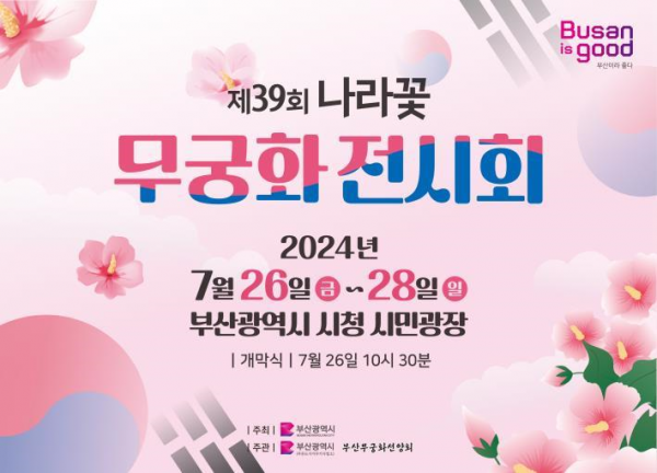[금요저널] 부산시 푸른도시가꾸기사업소는 오는 26일부터 7월 28일까지 시청 앞 시민광장 일원에서 ‘제39회 나라꽃 무궁화 전시회’를 개최한다고 밝혔다.