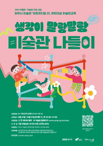 [금요저널] 여주시 미술관 ‘아트뮤지엄 려’에서는 오는 8월 21일부터 10월 31일까지 유아를 대상으로 하는 미술관 교육프로그램 ‘생각이 말랑말랑, 미술관 나들이’를 운영한다고 밝혔다.