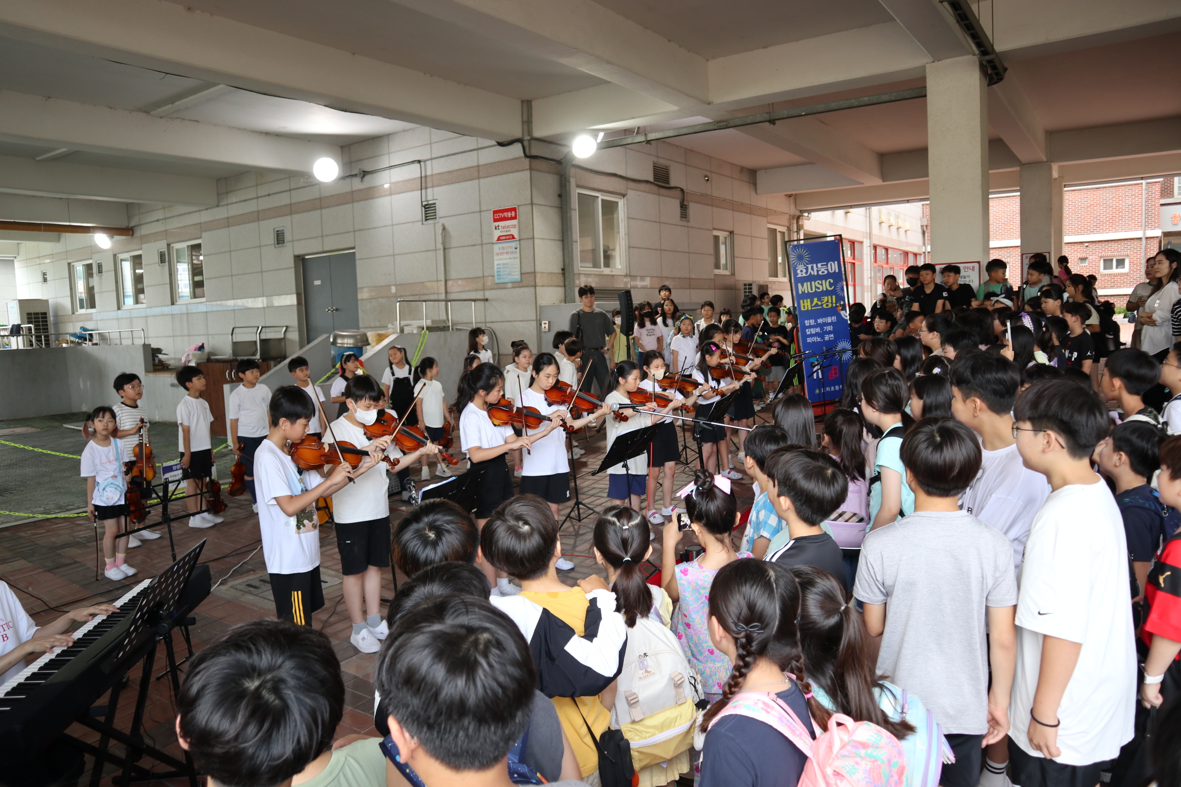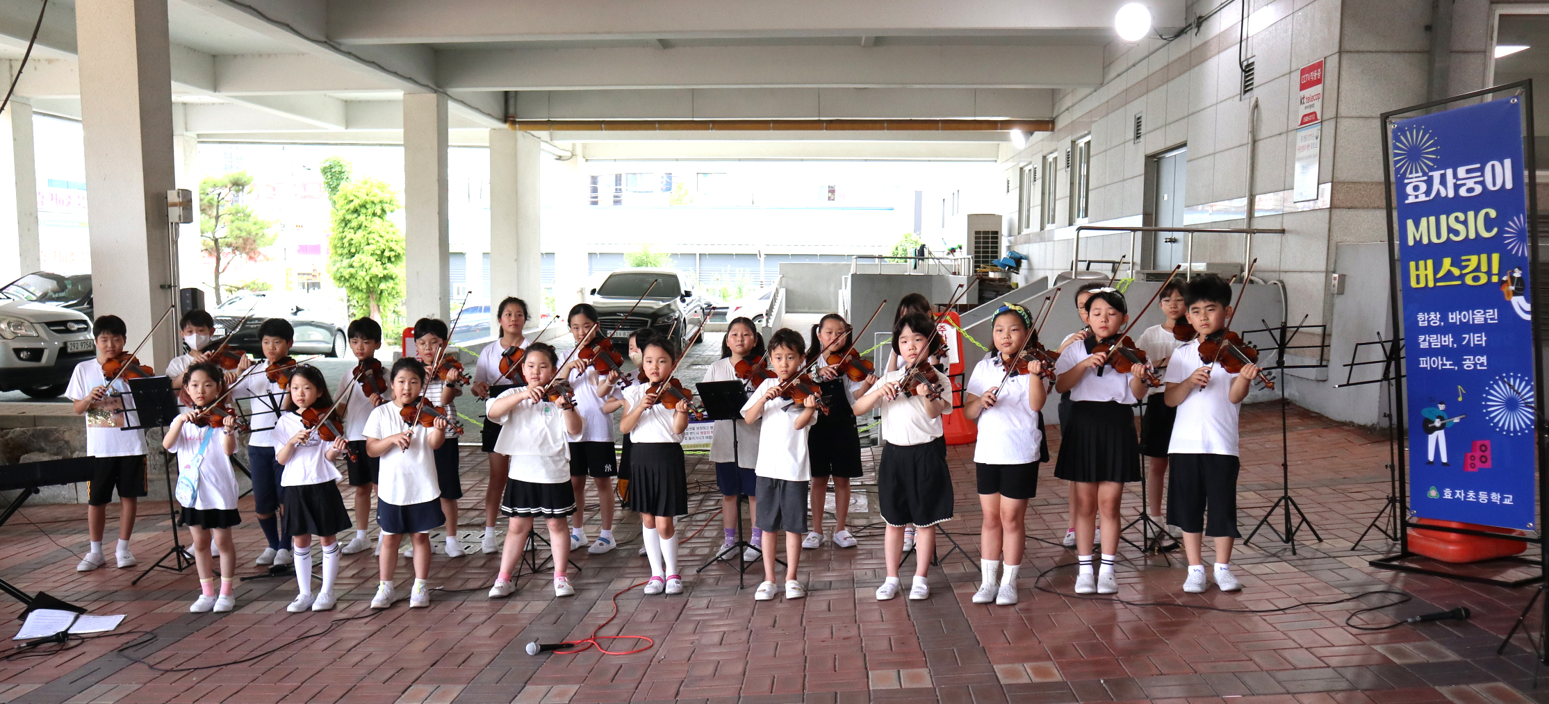 효자초등학교에서는 다양한 영역으로 17개의 방과후학교 프로그램을 운영 중이며, 그중 음악 관련 부서인 합창부과 바이올린부가 등굣길 버스킹을 실시하였다. 1~6학년으로 구성된 합창부는 매년 열리는 1000인 음악회에 참여하여 아름다운 목소리의 어울림을 보여주고 있다. 바이올린부는 학생들에게 인기가 있는 ‘밤양갱’,‘벼랑위의 포뇨’외 다수의 곡을 연주하여 많은 관심과 호응을 받았다.