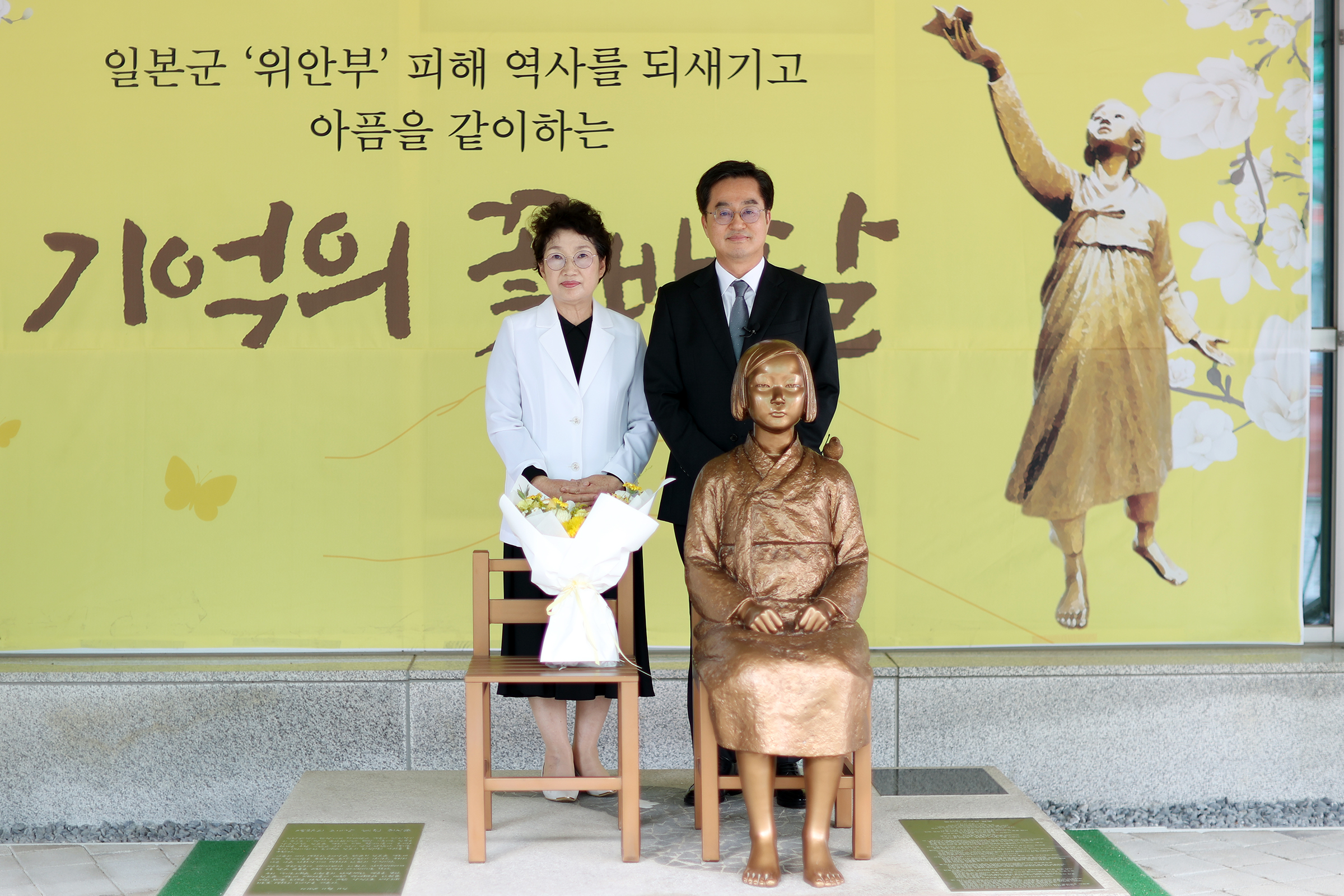 김동연 경기도지사는 캠페인 마지막 날인 24일 도청·도의회 앞 소녀상에 헌화한 후 “이 꽃다발은 아픈 역사를 반복하지 않기 위해, 인간의 존엄을 지키기 위해 용기 있는 증언에 나섰던 분들께 전하는 존경과 감사의 마음”이라며 “8월 14일 기림의 날을 꼭 함께 기억해 주시라”고 말했다.