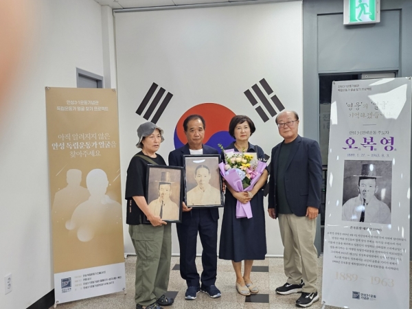 지난 7월 23일 영웅의 얼굴을 찾은 기념으로 오성환 유족 외 3분과 안성3.1운동기념관 관계자 등 참석한 가운데 기념 촬영이 진행됐다.