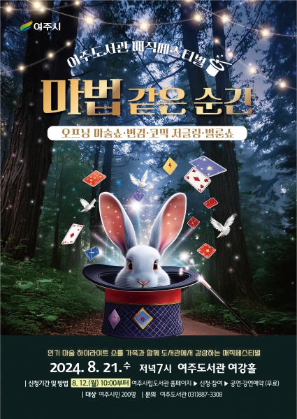 [금요저널] 여주도서관 여강홀에서 오는 8월 21일 수요일 저녁 7시, 인기 마술 하이라이트 쇼 ‘마법 같은 순간’을 공연한다.