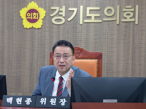 [금요저널] 경기도의회 도시환경위원회 백현종위원장이 25일 제376회 임시회 제2차 도시환경위원회 회의에서 기후환경에너지국 업무보고와 관련해 ‘경기도 기후행동 기회소득’ 사업비 추가경정예산 편성시 제도적 보완이 함께 이루어지도록 준비할 것을 주문했다.