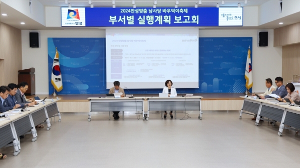 [금요저널] 안성시는 지난 23일 시청 대회의실에서 김보라 안성시장 주재로 관·과·소장 및 부서장 30여명이 참석한 가운데 ‘2024 안성맞춤 남사당 바우덕이 축제 부서별 실행계획 보고회’를 개최했다고 밝혔다.