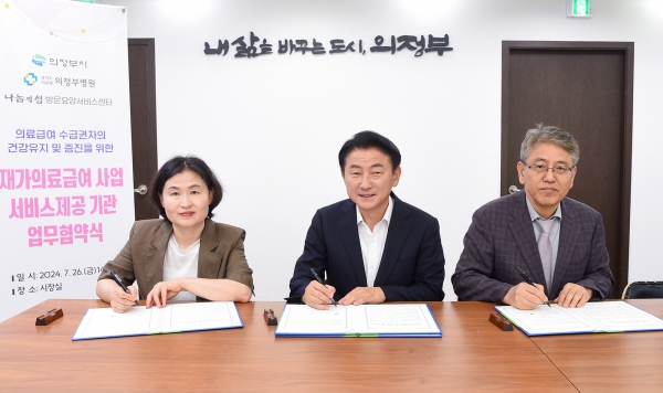 [금요저널] 의정부시는 재가 의료급여사업 추진을 위해 7월 26일 경기도의료원 의정부병원 및 나눔의샘 방문요양서비스센터와 서비스 제공기관 업무협약을 체결했다.