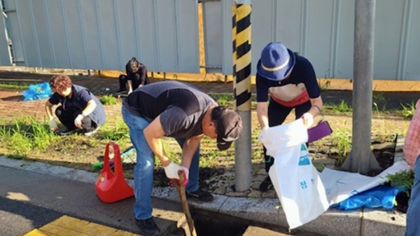 주민센터 교차로 일대 빗물받이 약 30개소를 정비하며 퇴적된 토사를 제거했고 오염물로 빗물받이가 뒤덮이지 않도록 주변 잡초와 쓰레기 1,000kg을 수거했다.