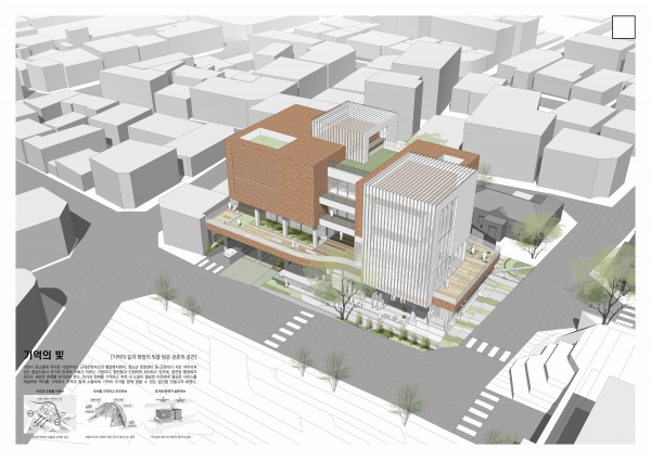 당선작은 역사를 기억하고 보훈의 의미를 되새길 수 있도록 저층부에 기억의 길과 추모의 벽을 조성했고 인접한 경기도 근대건축자산 건축물과의 공존을 위해 소통마당과 공존의 마당을 계획했다.