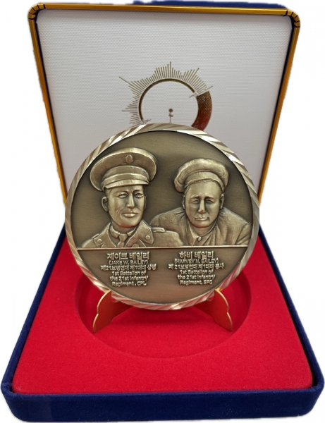 올해 제작한 기념코인에는 참전용사의 성 알파벳순에 따라 선정된 제이크 베일리와 하비 베일리의 모습, 이름, 소속 부대, 계급 등이 새겨져 있다.