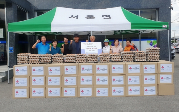 [금요저널] 서운면 지역사회보장협의체가 지난 25일 관내 취약계층을 위한 특화사업의 일환으로 식료품 꾸러미 100세트와 정훈농장에서 기부한 계란 100판을 나눔하는 사업을 실시했다.