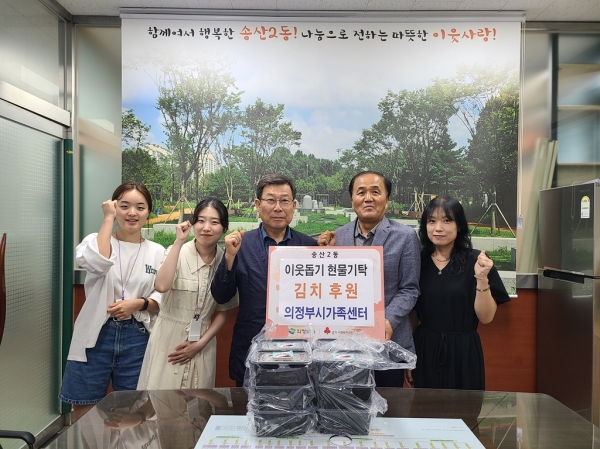 [금요저널] 의정부시 송산2동주민센터는 의정부시가족센터가 어려운 이웃에게 전달해 달라며 김치 45팩을 기부했다고 31일 밝혔다.