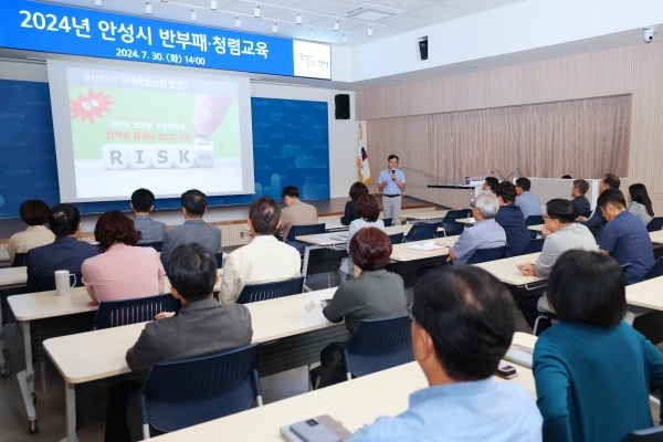 [금요저널] 안성시는 지난 30일 시청 대회의실에서 5급 이상 간부 공무원 60여명이 참석한 가운데 반부패 청렴교육을 실시했다.
