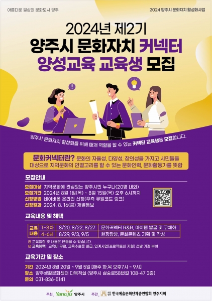 양주시, ‘2024년 제2기 문화 자치 커넥터 양성 교육’ 교육생 모집