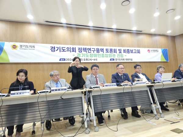 이번 토론회는 경기도의회 정책연구용역의 일환으로 경기도의회 보건복지위원회 박재용 의원이 좌장을 맡아 나사렛대학교 우주형 교수의 ‘경기도 장애인종합회관 설립 방안 연구’를 발제로 진행됐다.