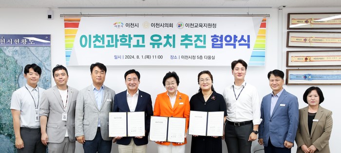 이천시는 지난 4월 경기도교육청의 과학고 신규 지정 계획 발표에 따라 지난 1일 시청 5층 다올실에서 이천시의회, 이천교육지원청과 이천과학고 유치 추진을 위한 협약을 체결했다.