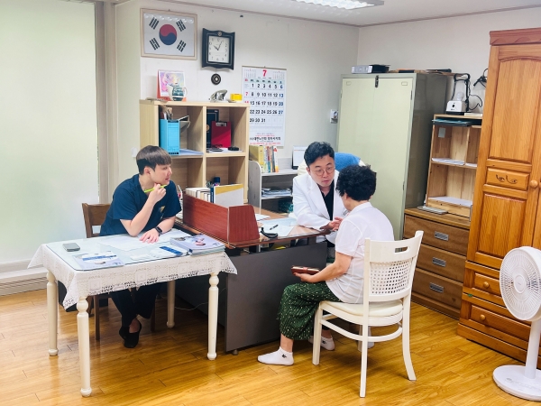 무더운 날씨에도 고읍 휴먼시아 8단지의 많은 어르신이 경로당에 찾아와 의료진에게 혈압과 혈당을 측정하고 노년기에 겪기 쉬운 만성질환과 만성통증에 대한 관리법과 진료 등 어르신들에게 안내했다.