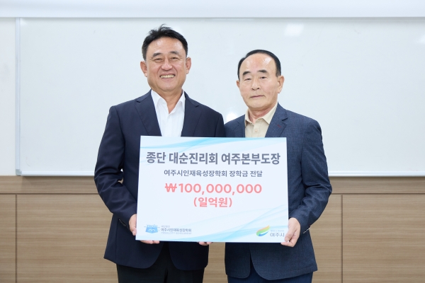 [금요저널] 종단 대순진리회 여주본부도장에서 지난 8월 2일 여주시인재육성장학회에 장학금 1억원을 기부했다.