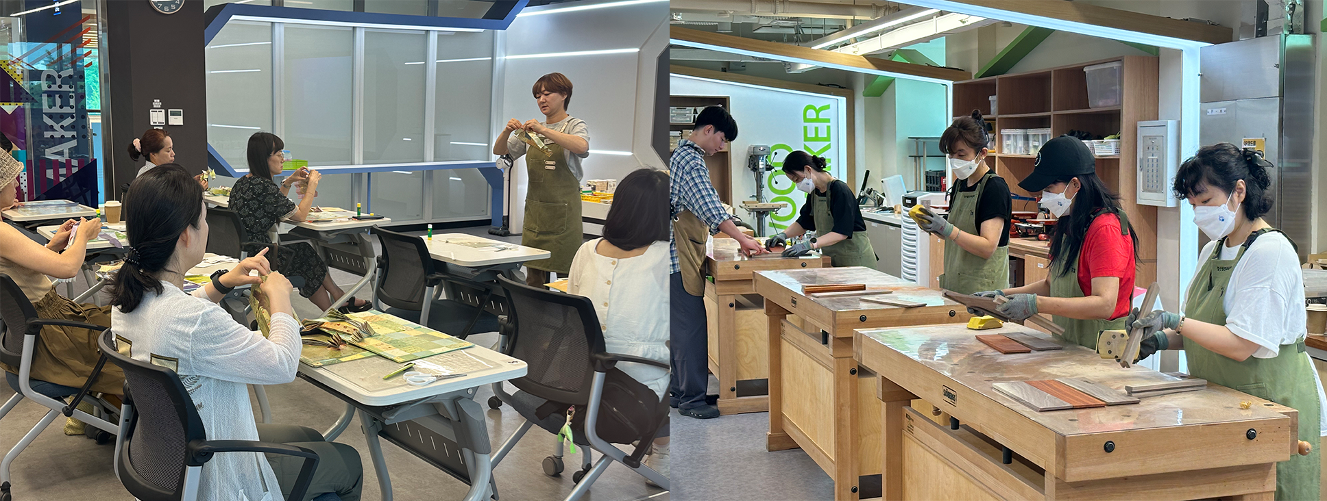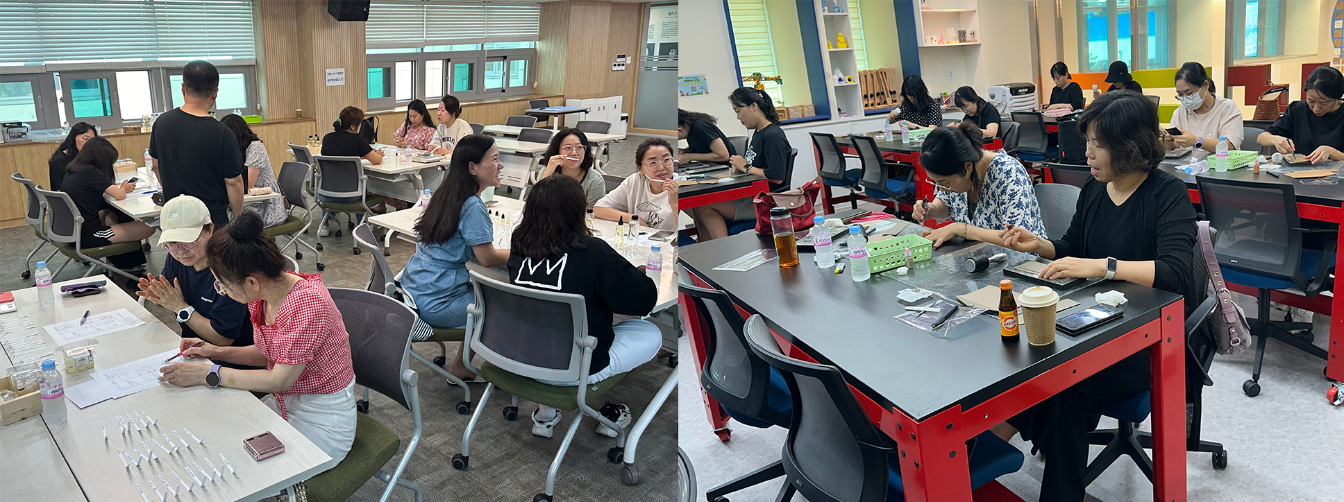 □ 이번 학부모ㆍ지역민 연수에는 목공실습(원목 트레이 만들기), 가죽공예(슬링 장지갑/아코디언 카드지갑 만들기), 디퓨저(퍼스널 향기&모기 기피제 만들기), 북아트(북램프&실제본다이어리 만들기)과정으로 진행되었다. 이번 과정을 통해 지역의 학부모ㆍ지역민들에게 발명교육과 메이커교육에 대한 정보도 제공하였으며, 남부메이커교육센터와 경산발명교육센터에서 어떤 교육이 이루어지고 있는지에 대한 홍보도 더불어 이루어졌다.