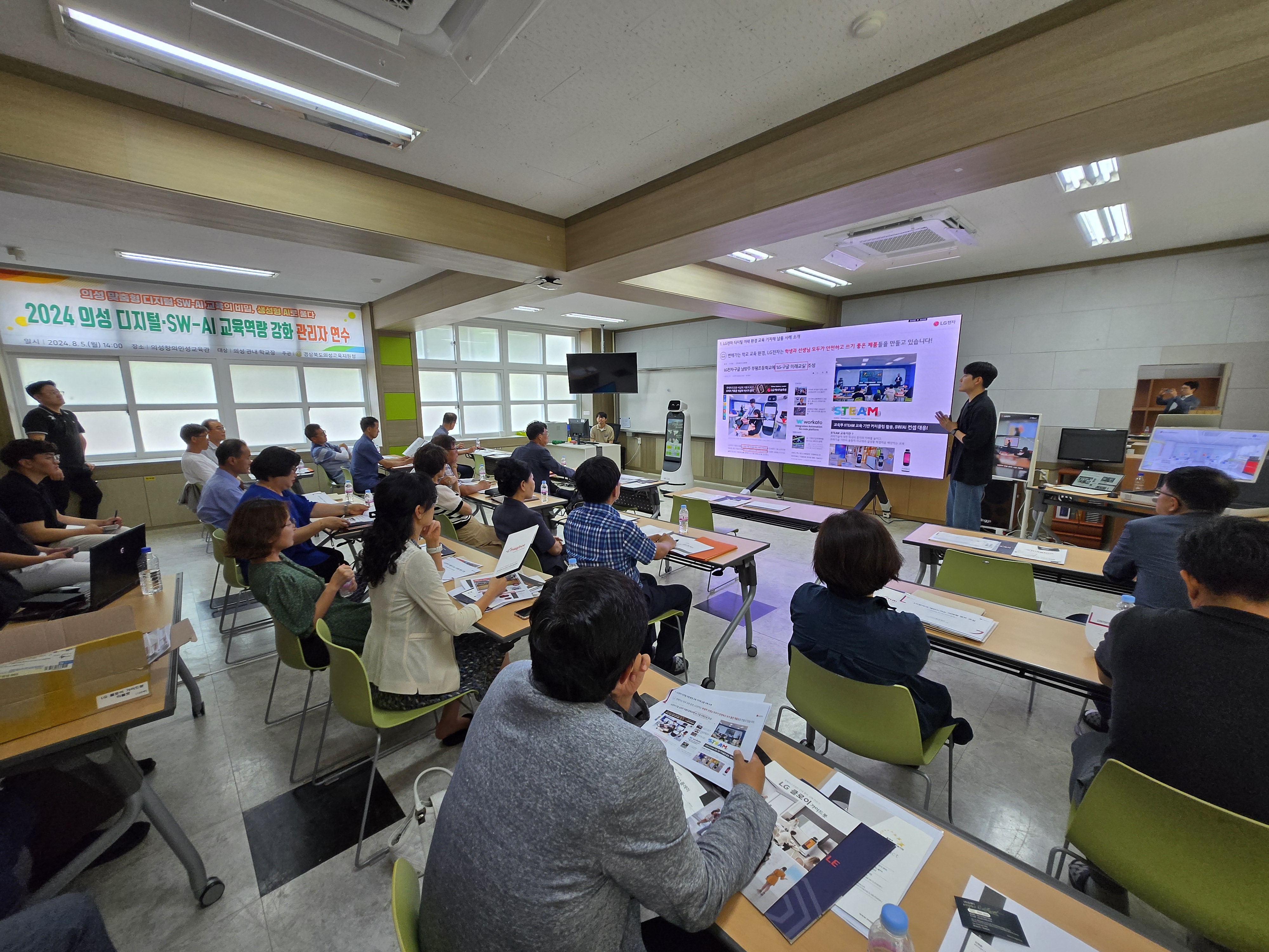 경상북도의성교육지원청(박명호 교육장)은 8월 5일(월) 의성 관내 학교장 25명을 대상으로‘2024 의성 디지털 SW-AI 교육역량 강화 관리자 연수'를 개최했다. 이번 연수는 최신 AI 기술이 접목된 교구를 직접 체험해 보는 프로그램으로 구성함으로써 학교 관리자들의 디지털 교육 역량을 강화하는 동시에 교육 현장에서 SW-AI 기술이 효과적으로 적용될 기회를 제공했다.