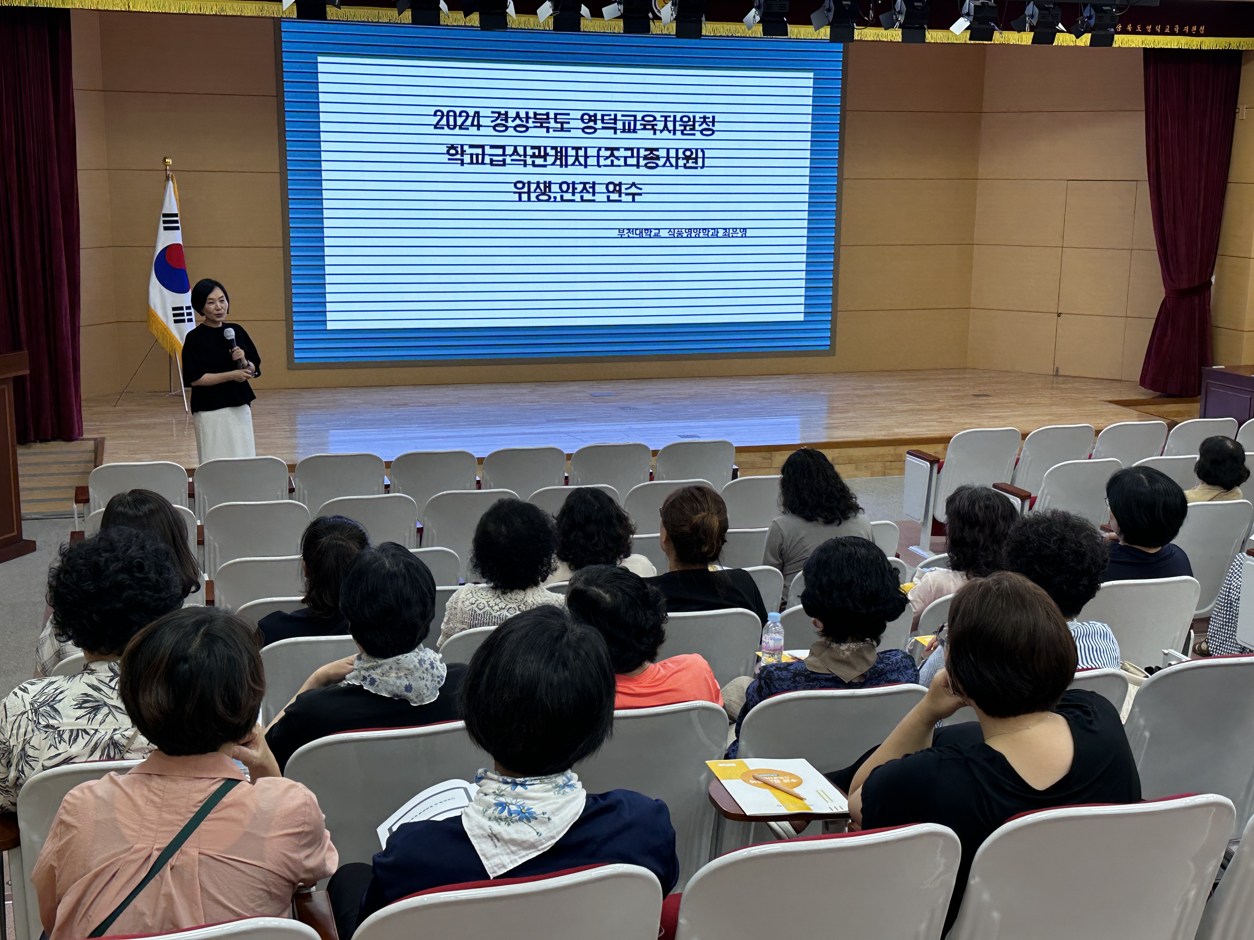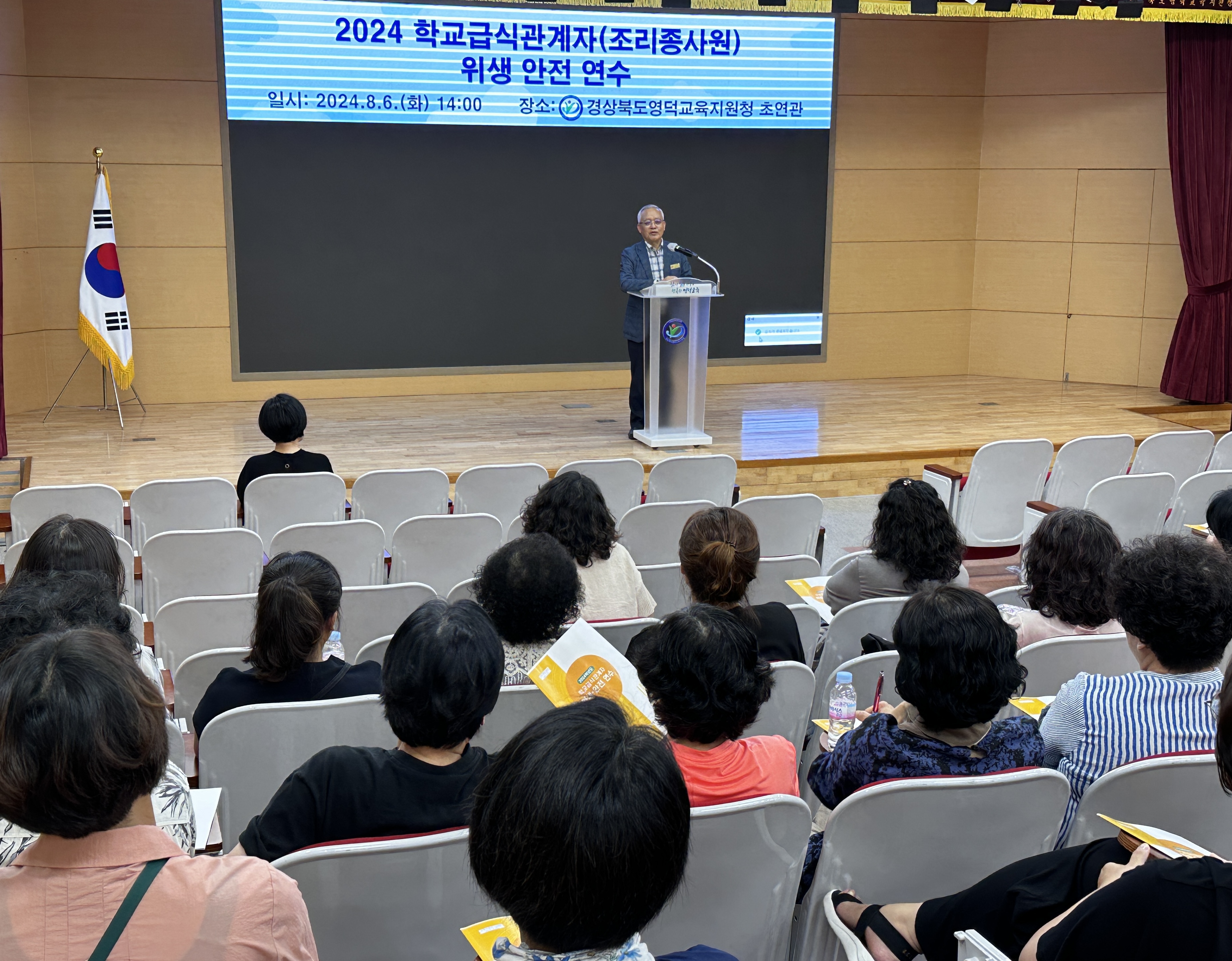 경상북도영덕교육지원청(교육장 윤인한)은 학교 급식관계자의 위생관리 및 안전한 급식 제공 능력 향상을 위해 관내 초·중·고 조리사, 조리원 등 급식관계자를 대상으로 교육을 실시하였다.
