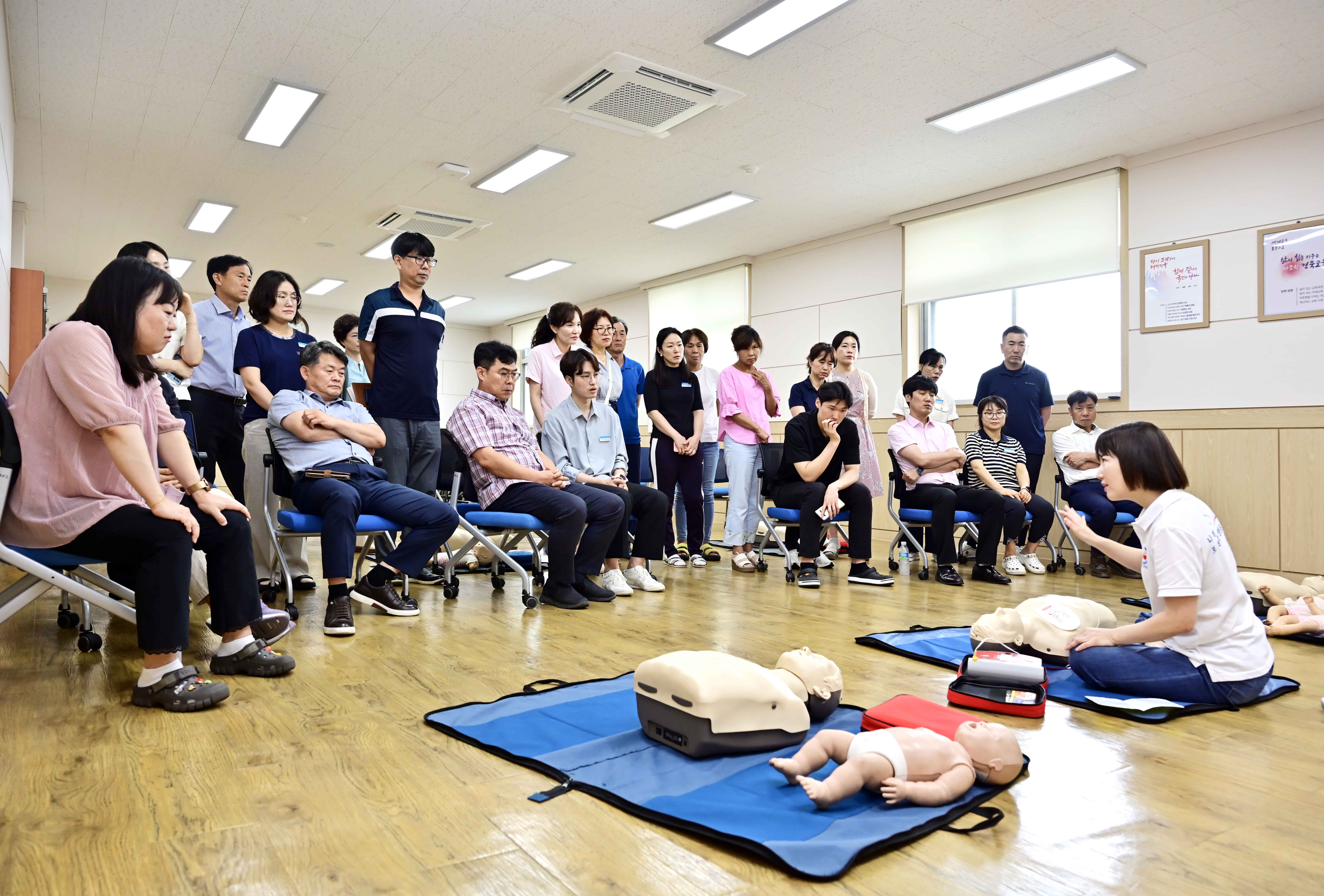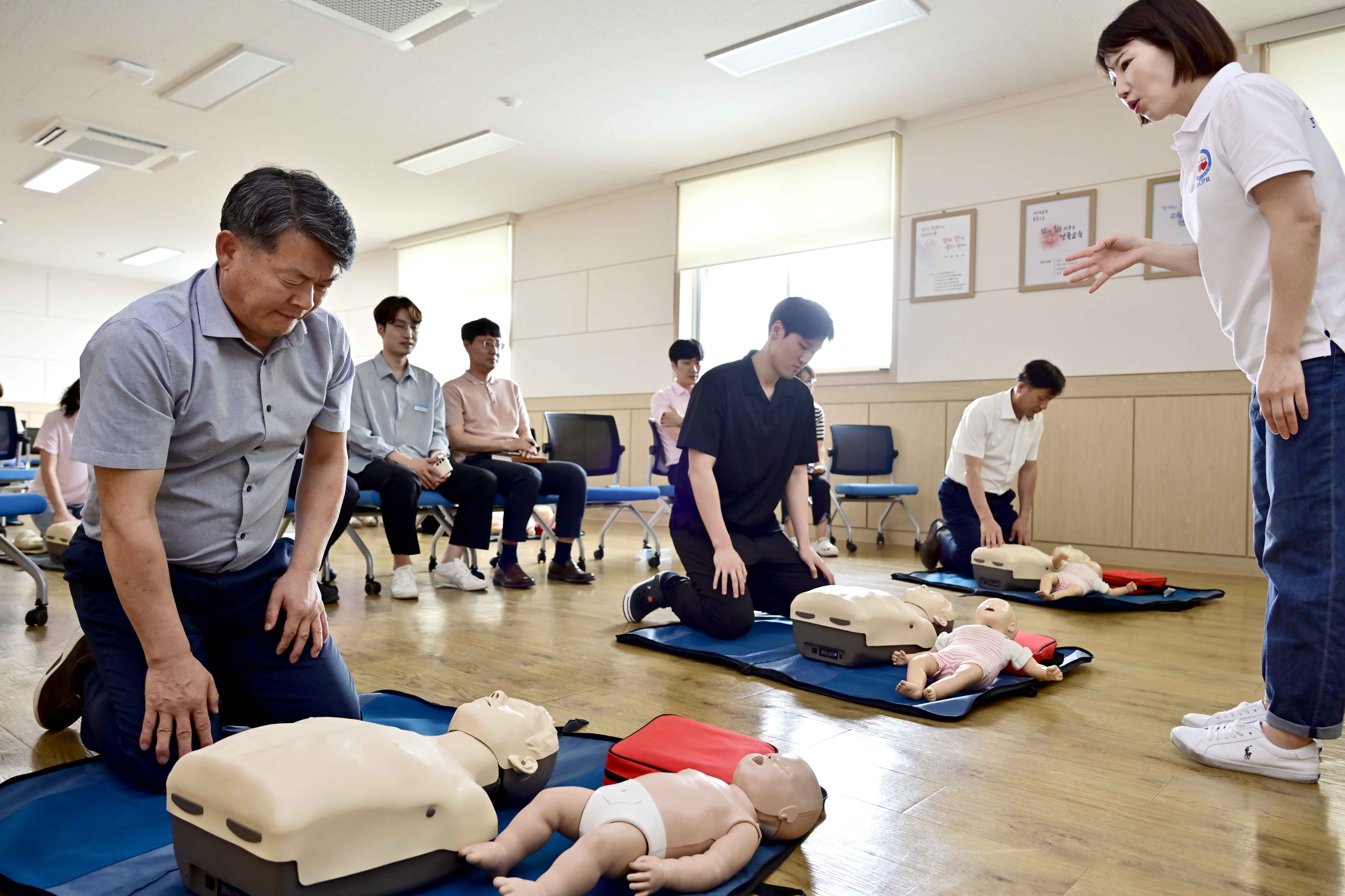 □ 경상북도교육청연구원(원장 박용휘)은 2024년 7월 16일(화)과 8월 5일(월) 양일간 소속 전직원을 대상으로 심폐소생술 등 응급처치교육을 실시하였다.