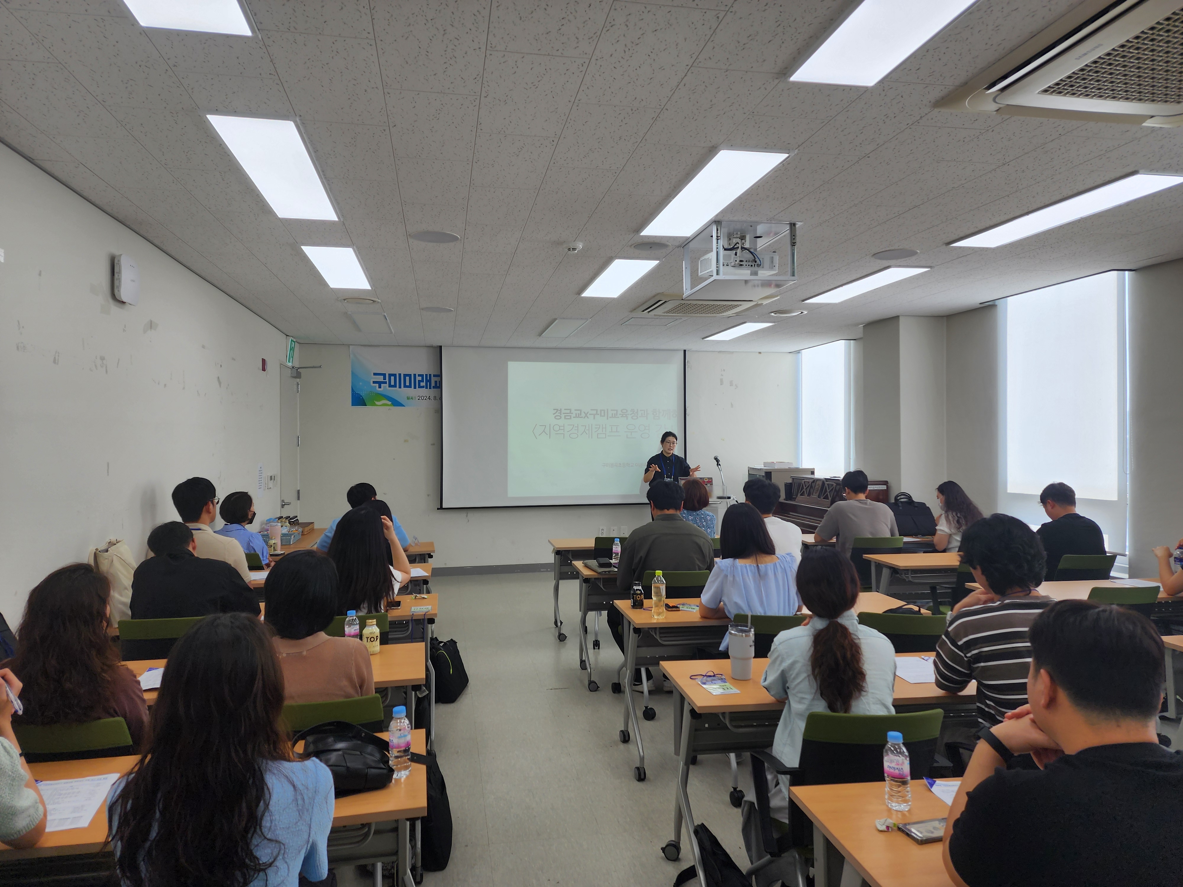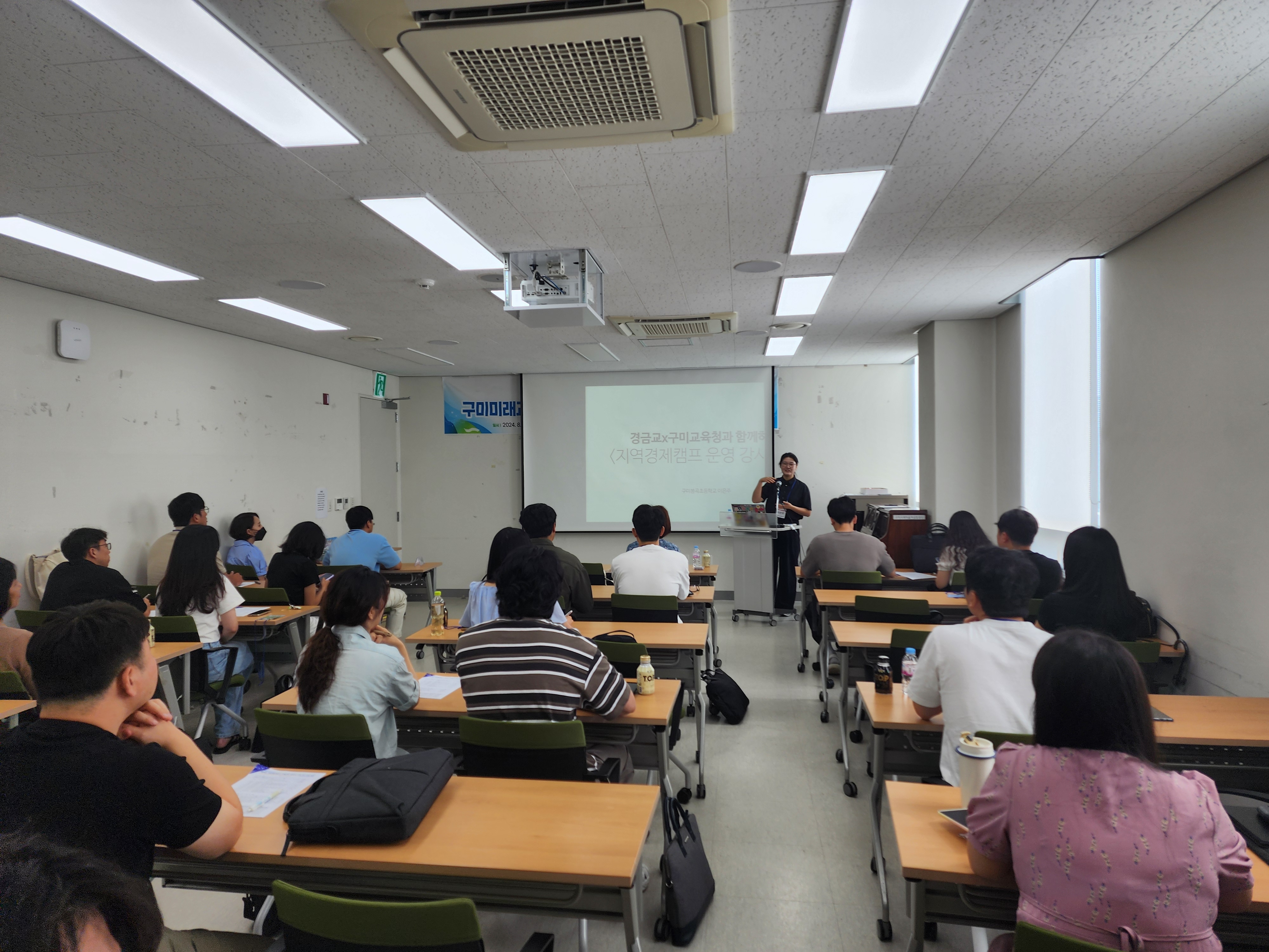 경상북도구미교육지원청(교육장 남성관)은 8월 6일(화) 새마을운동테마공원 연수관에서 경북지역의 초등학교 및 중학교 교사 26명을 대상으로 ‘2024년 구미미래교육지구 경제캠프 운영 강사 요원 연수’를 실시했다고 밝혔다.