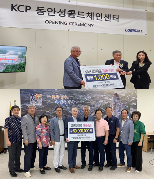 이번에 기부금을 기탁한 KPC 동안성 콜드체인센터(회장 서병륜)는 지난 7월 12일에 일죽면 주천리에 개장한 최첨단 저온 물류센터이며, 안성맞춤개발(대표 김찬수)은 일죽면 능국리에 본사를 두고 대규모 물류 단지를 운영하면서 그동안 불우이웃 돕기 성금을 꾸준히 기탁하는 등 지역 발전을 위해 다양한 활동을 한 기업체이다.