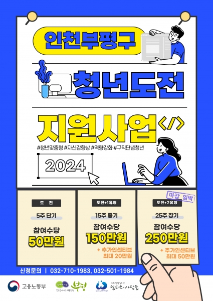 [금요저널] 부평구는 7일 구직단념청년의 사회참여역량을 강화하고 취업을 지원하기 위해 ‘2024년 청년도전 지원사업 참여자’를 모집한다고 밝혔다.