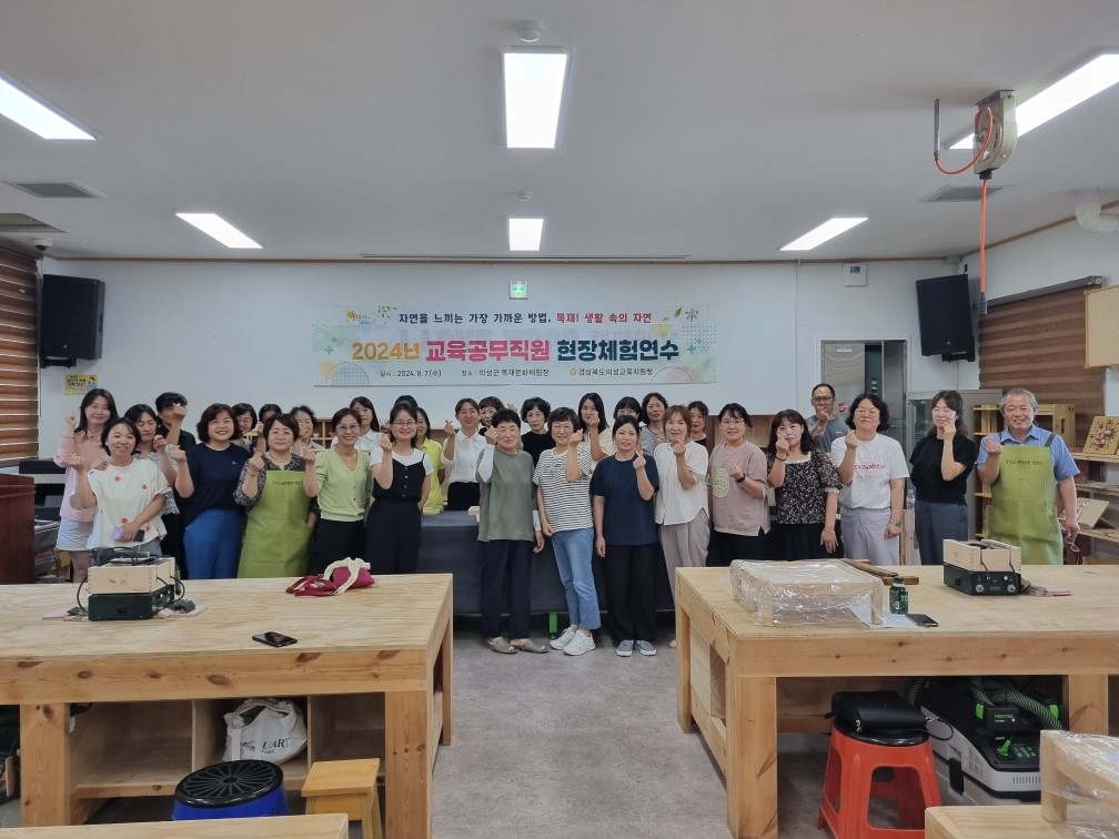 경상북도의성교육지원청(교육장 박명호)은 2024년 교육공무직원 현장체험연수를 7일(수) 의성군 목재체험장에서 진행했다.