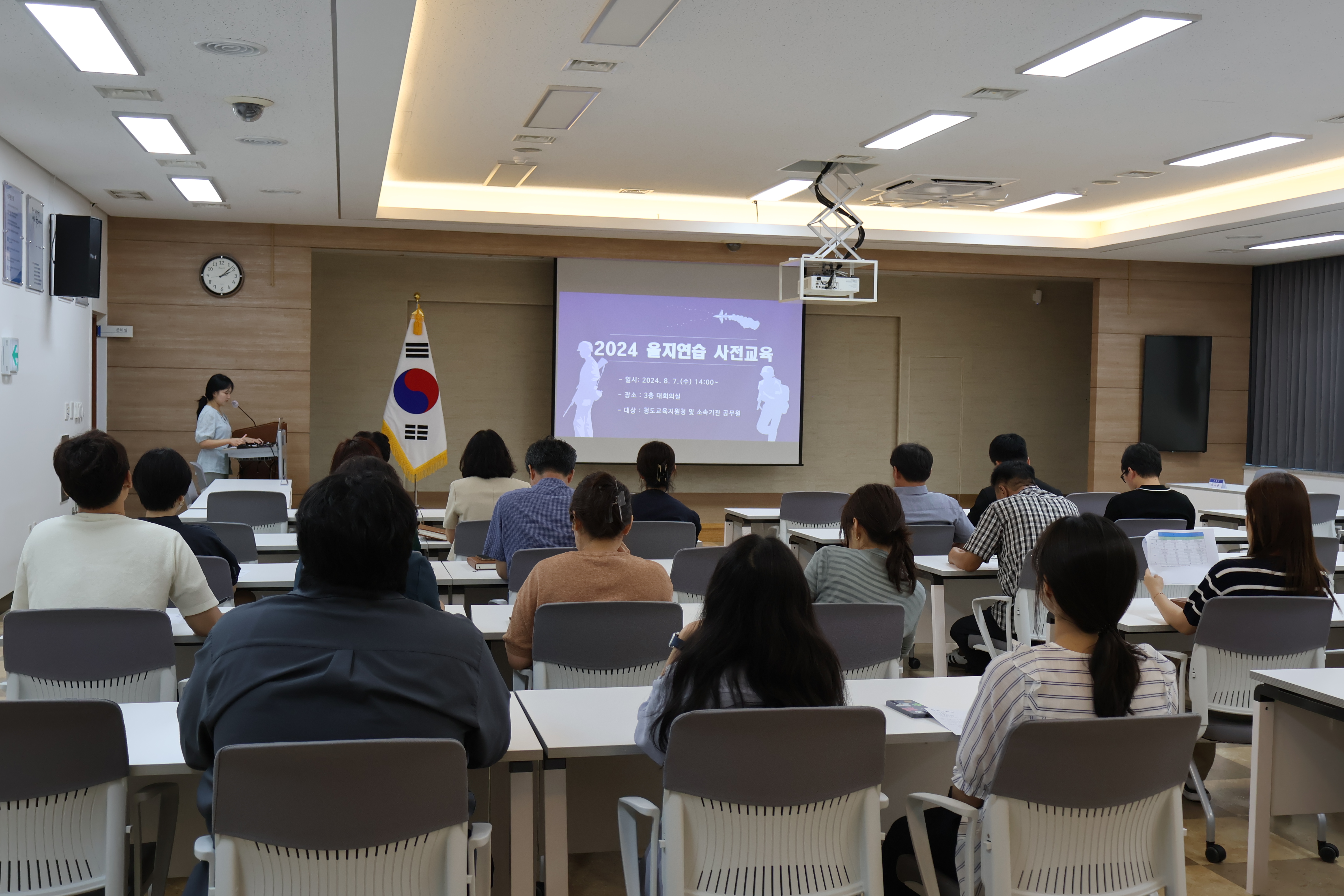 청도교육지원청(교육장 이시균)은 지난 7일(수) 교육지원청 및 소속기관(청도도서관, 청도학생수련원) 전 직원을 대상으로‘2024년 을지연습 사전 직원 교육 및 안보교육’을 실시했다.