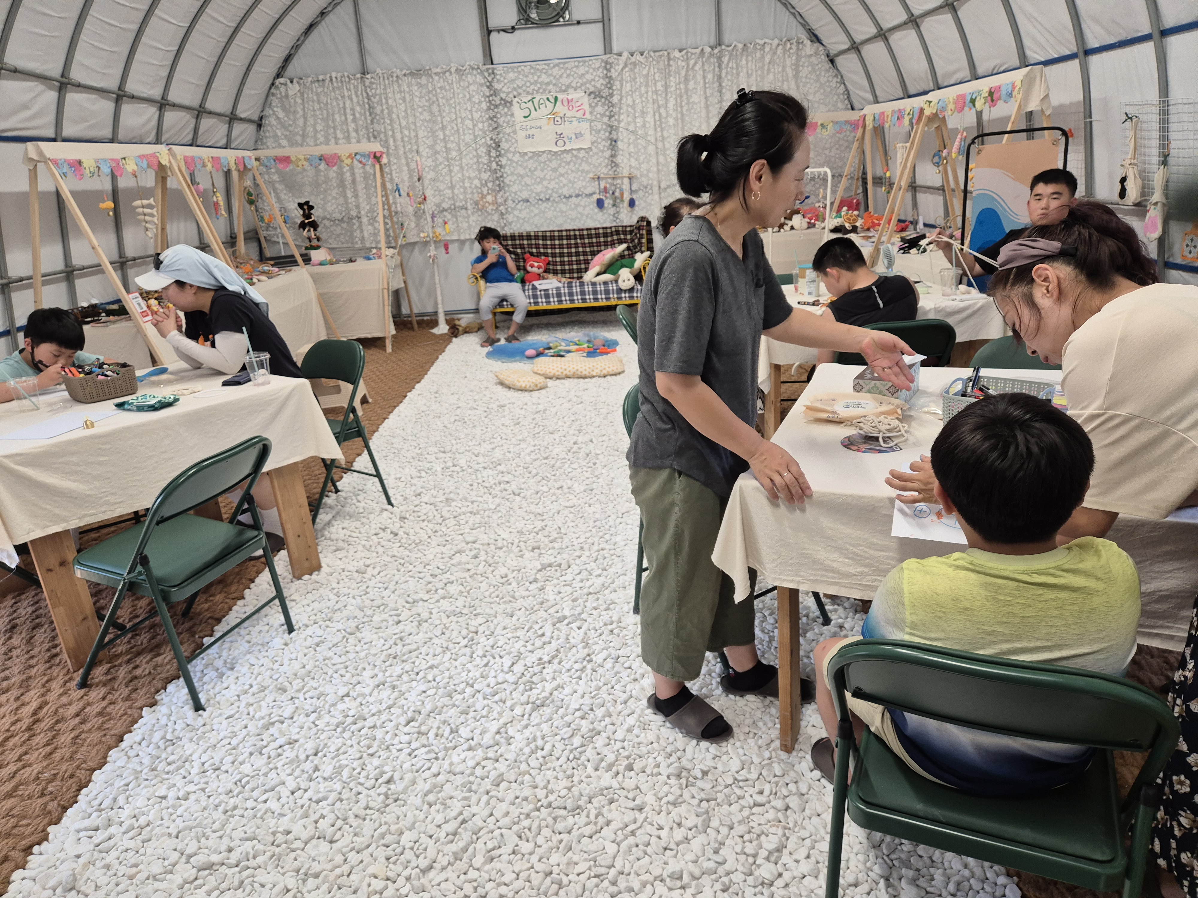 □ 8월 7일(수), 8월 8일(목) 지품면에 위치한 ‘바느질하는 농부’라는 체험장에서 5명의 학생이 보호자와 함께 도어벨 만들기, 고양이 자석 꾸미기 등의 즐거운 체험활동을 하였다. 강사는 지역의 토탈 공예 방과후활동 강사로 이름난 김지형 대표가 맡았다. 학생들은 8월 14일(수) 영해면으로 자리를 옮겨 ‘빵마을 힐링 캠프’에서 지역의 특산물인 복숭아로 케이크 만드는 체험을 한다.