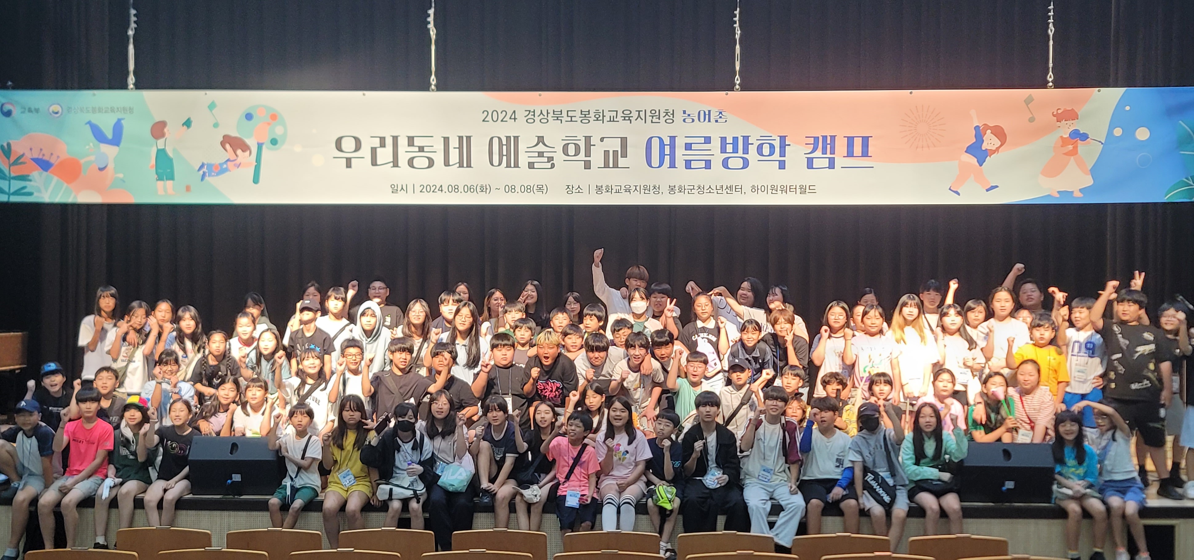 봉화교육지원청(교육장 권혜자)은 운영기관 ㈜아츠리퍼블릭(대표 최중민)과 8월 6일부터 8월 8일까지 2박 3일 동안 관내 11개교 초·중학생 115명을 대상으로 2024 농어촌 ‘우리동네 예술학교 여름방학 캠프’를 실시했다.