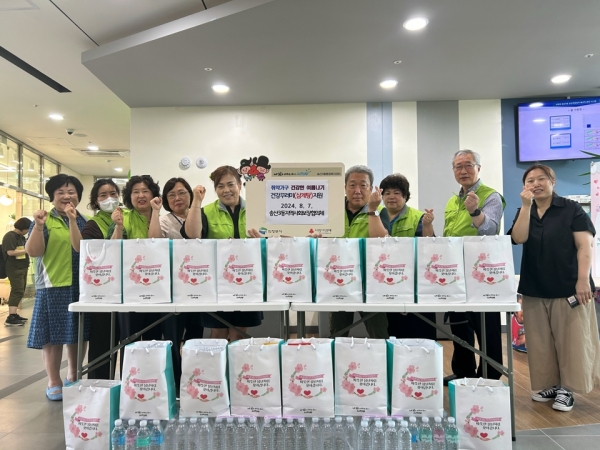 폭염 피해에 노출되기 쉬운 저소득 독거노인, 중장년 위기의심가구, 한부모가족 등 50가구에 삼계탕을 비롯한 다양한 간식과 건강정보, 복지 홍보물로 구성된 건강꾸러미를 지원했다.