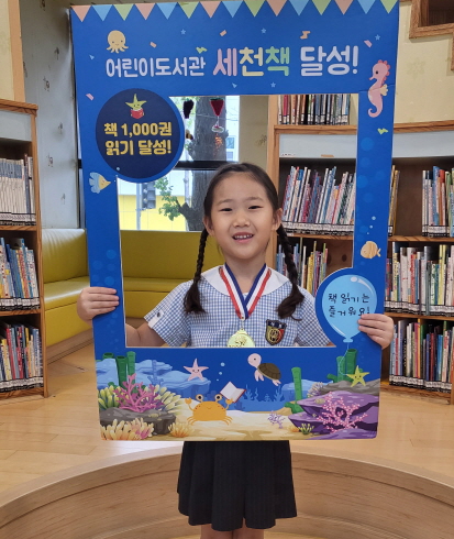 신지안 어린이는 8월 8일 어린이도서관에 방문해 ‘세천책’ 달성 인증서와 메달을 받았다.