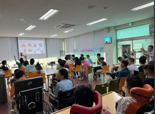[금요저널] 여주시보건소 건강증진과에서는 지난 8월 8일 중증장애인 거주시설 ‘다산하늘센터’ 에서 입소자 32명을 대상으로 성교육 프로그램을 진행했다.