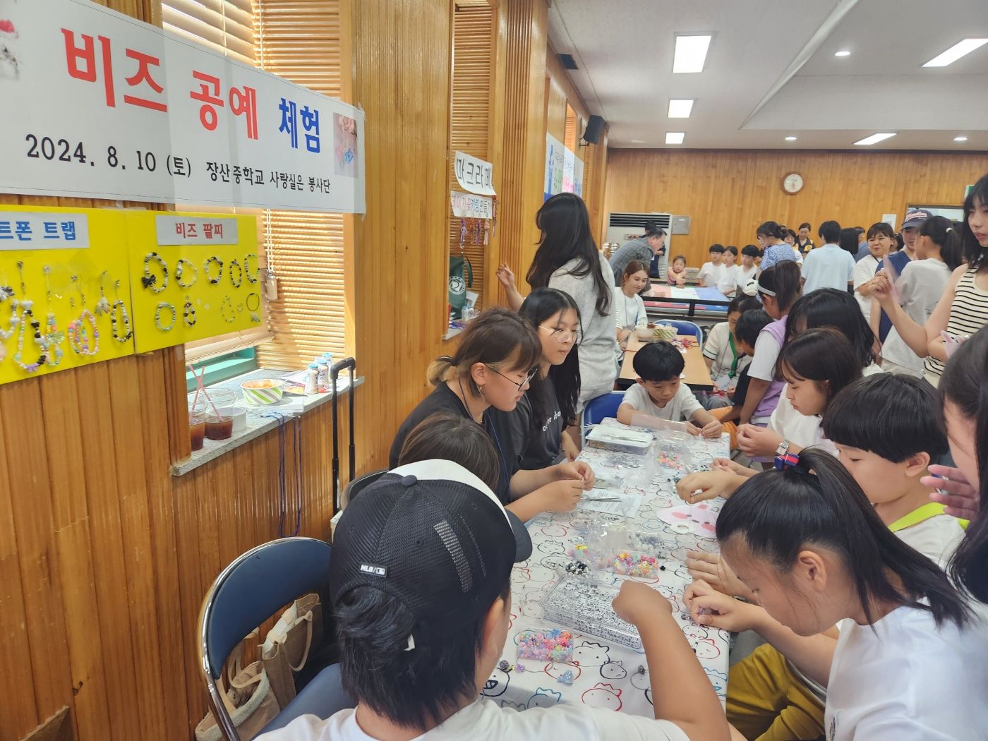 이번 행사는 학생들이 방학 동안 배운 비즈를 활용하여 만드는 스마트폰트랩, 키링, 팔찌, 반지 등을 지역주민들에게 재능 나눔의 일환으로 제공했다.