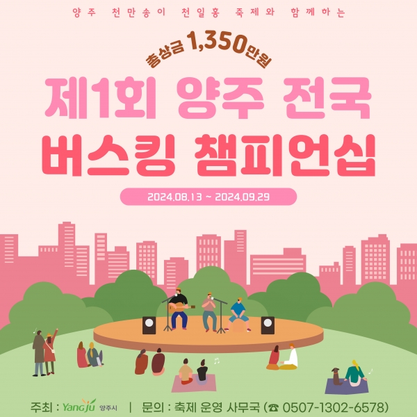 [금요저널] 양주시 오는 9월 열리는 천일홍 축제와 연계해 개최될 ‘제1회 양주 전국 버스킹 챔피언십’에 참여할 예술가를 공개 모집한다고 13일 밝혔다.
