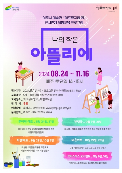 [금요저널] 여주시 미술관 ‘아트뮤지엄 려’는 2024년 8월 24일부터 11월 16일 사이, 매주 토요일에 전시연계 체험교육 ‘나의 작은 아뜰리에’를 운영한다.