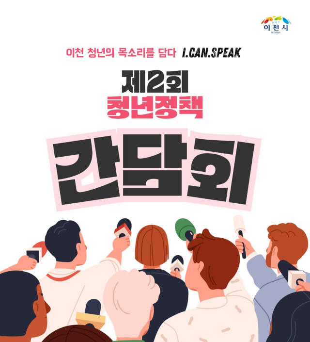 이천시는 오는 30일 오후 4시 시청 대회의실에서 청년들의 현실적인 문제와 청년정책에 대해 진솔하게 의견을 나누는 제2회 청년정책간담회 ‘I. CAN. SPEAK’를 개최한다.