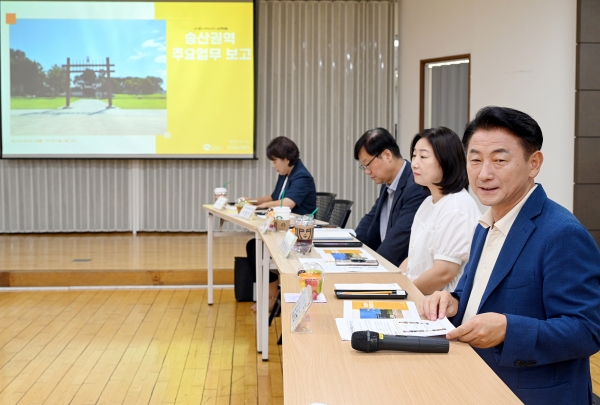 또 송산권역의 현안 사업인 송산사지근린공원 주차장 조성 등 환경개선사업, 송산권역 도시공원 환경정비 공사, 부용터널 상부 파크골프장 조성, 306보충대 임시 대형차량 주차공간 조성에 대한 상세한 설명이 이어졌다.